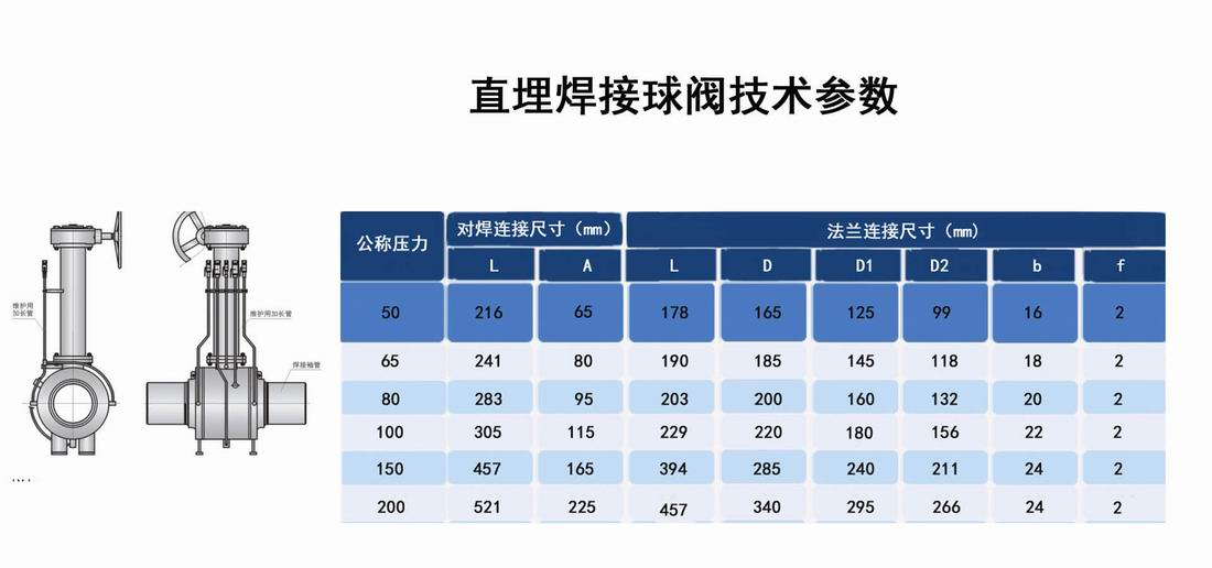 進口長桿直埋式全焊接球閥技術參數