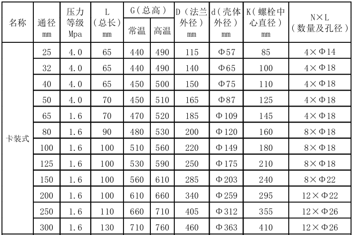 壓力等級 1.6MPa、2.5MPa、4.0MPa